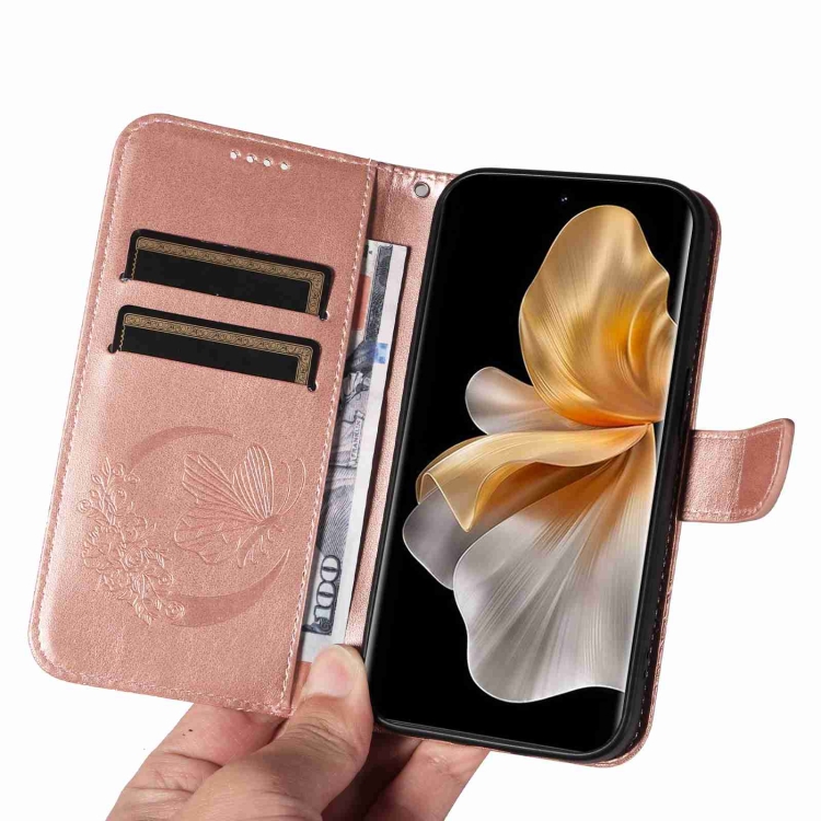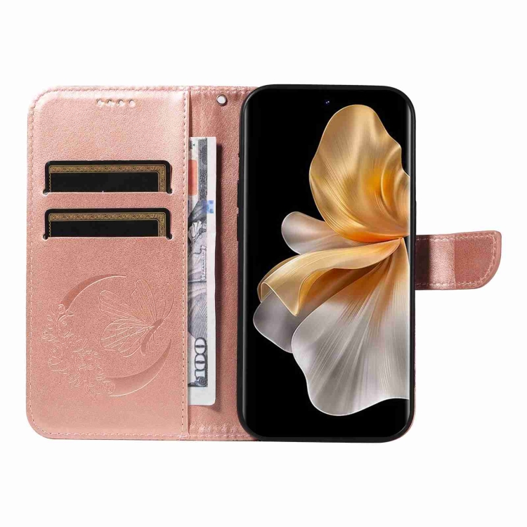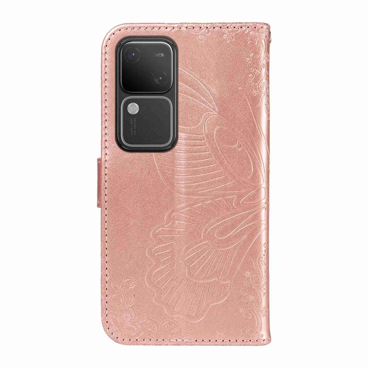 Para Vivo S18 5G Swallowtail Butterfly Funda de Cuero para Teléfono En Relieve (Oro Rosa)