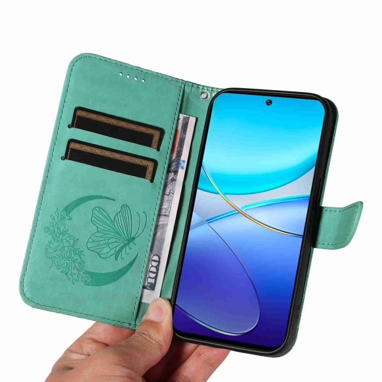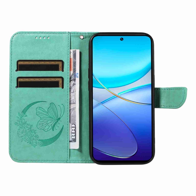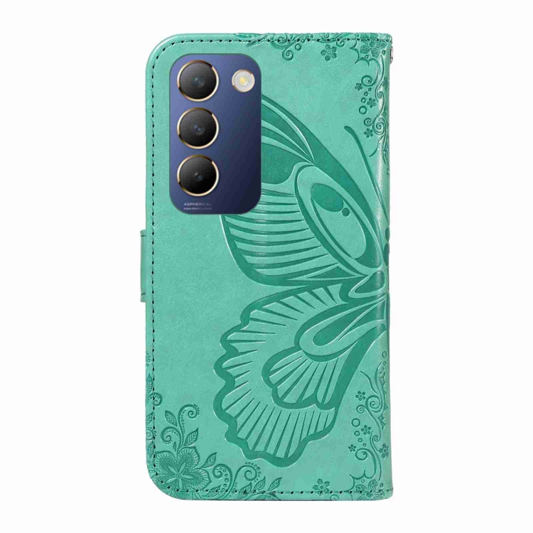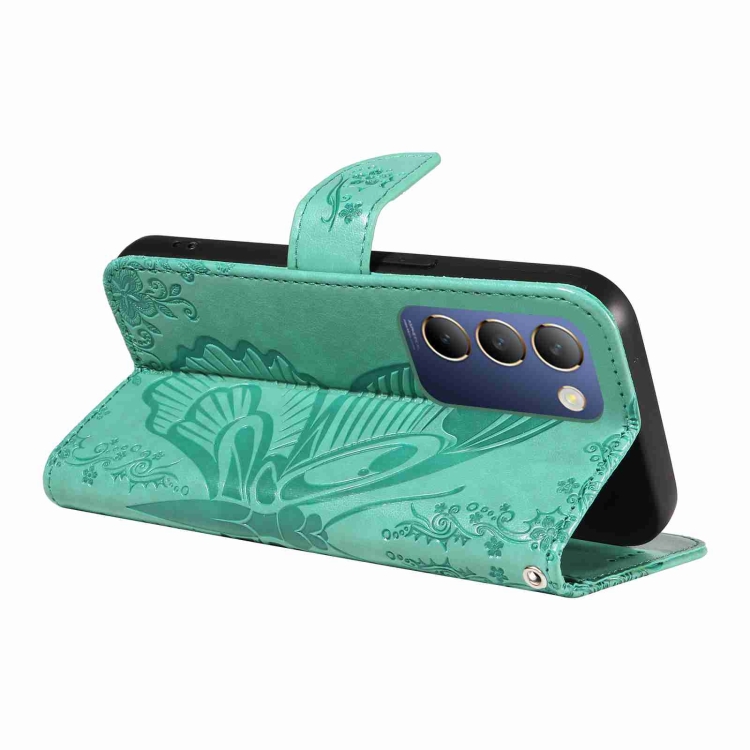Para Vivo V40 Se 5G / Y100 Idn / Y200E Funda para Teléfono de Cuero con Relieve de Mariposa de Cola de Golondrina (Verde)