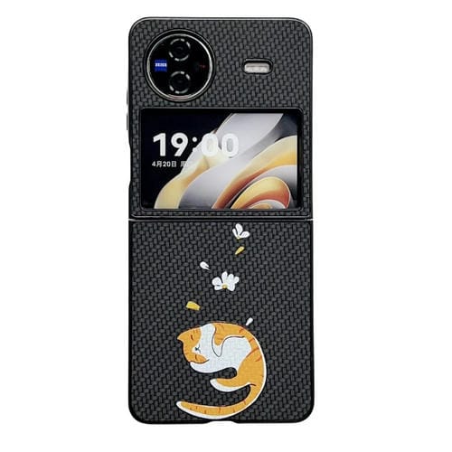 Para Vivo X Flip Funda para Teléfono con Patrón de Dibujo Coloreado con Textura Trenzada (Gato Durmiente Negro)