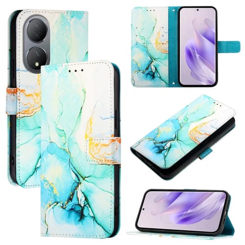 Para Vivo Y100 5G Global Pt003 Funda para Teléfono de Cuero con Tapa con Patrón de Mármol (Verde)