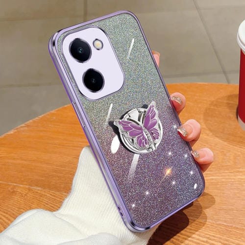 Para Vivo Y100I Estuche para Teléfono de TPU con Soporte de Mariposa con Brillo Degradado Plateado (Púrpura)