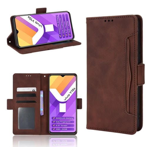 Para Vivo Y15S 2021 / Y15A Siente la Caja del Teléfono de Cuero del Patrón de Pantorrilla (Marrón)