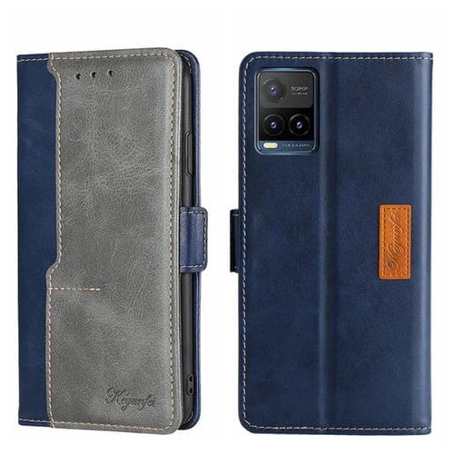 Para Vivo Y21/Y21S/Y33S Color de Contraste Colo de Cuero de Hebilla de Hebilla (Azul + Gris)
