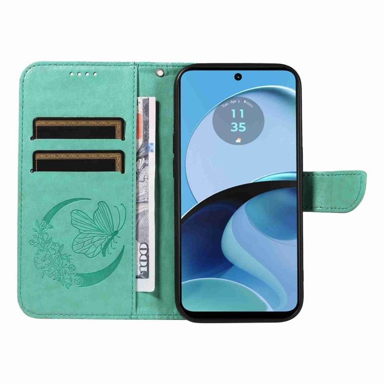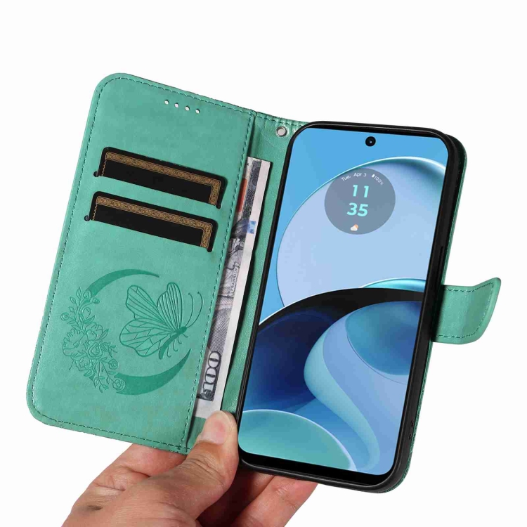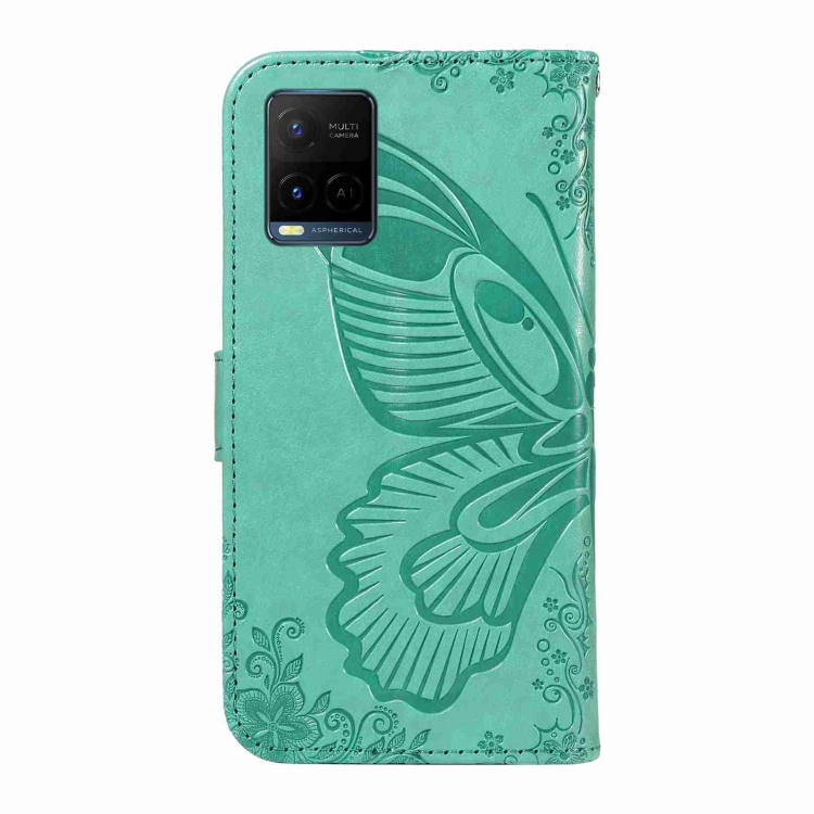 Para Vivo Y21 / Y21S / Y33S Funda para Teléfono de Cuero con Relieve de Mariposa y Cola de Golondrina (Verde)