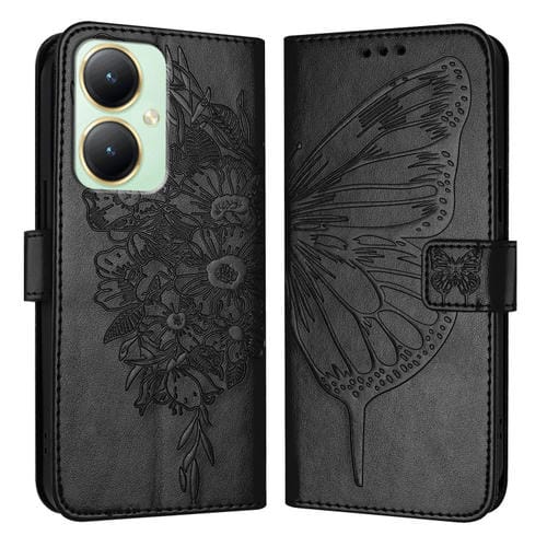 Para Vivo Y27 4G Funda de Cuero para Teléfono con Mariposa En Relieve Global (Negro)
