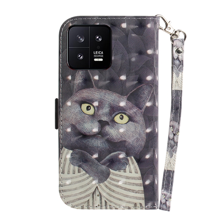 Para Xiaomi 13 5G Estuche de Teléfono de Cuero con Tapa Horizontal de Color 3D (Hug Cat)