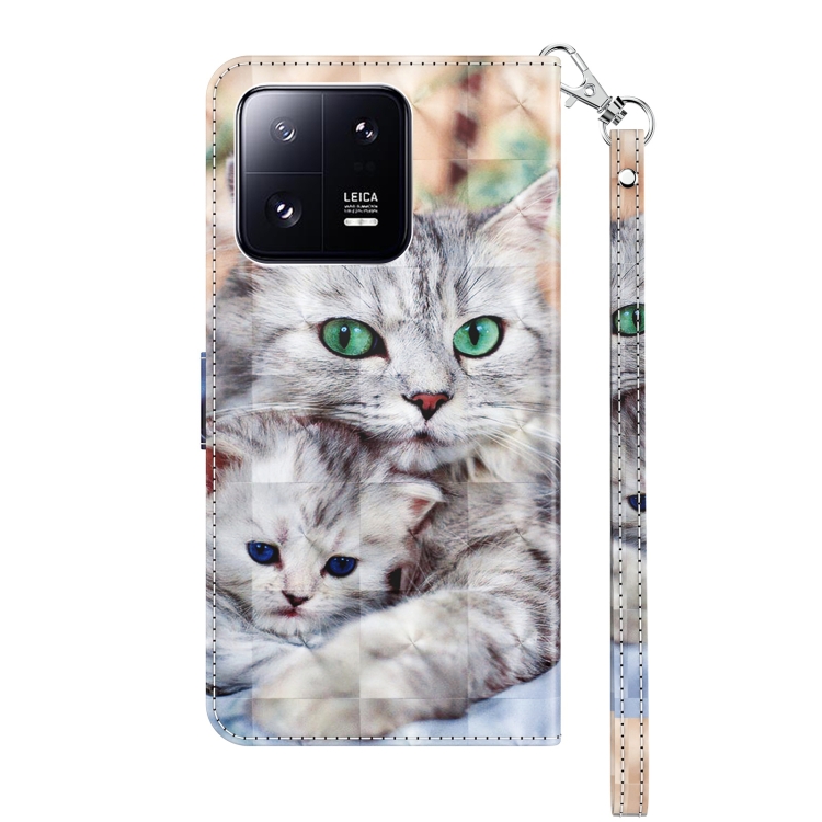 Pour Xiaomi 13 Pro Étui de téléphone en cuir à motif peint en 3D (Deux chats aimants)