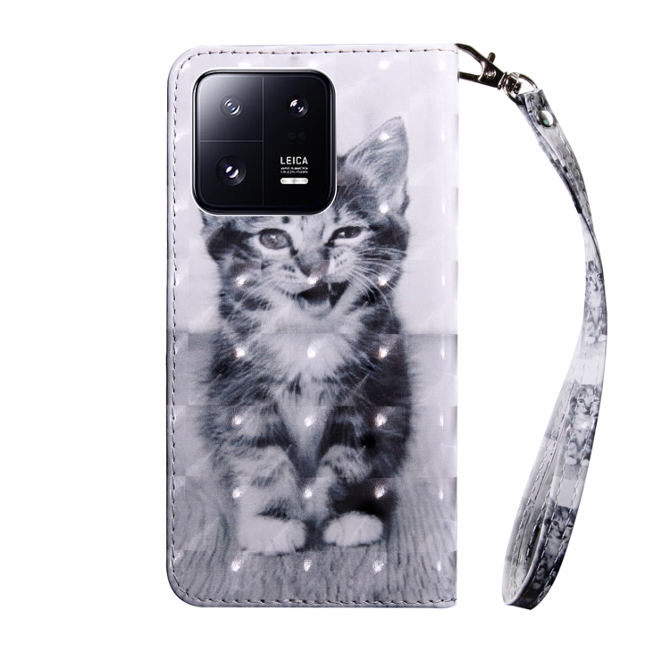 Pour Xiaomi 13 Pro Étui de téléphone en cuir à motif peint en 3D (chat souriant)