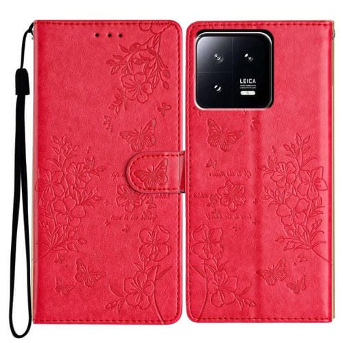 Para Xiaomi 13 Pro Funda de Cuero para Teléfono con Mariposas y Flores (Rojo)