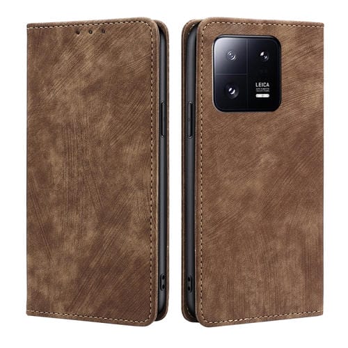 Para Xiaomi 13 Pro Rfid Funda de Teléfono de Cuero Magnético con Cepillo Antirrobo (Marrón)