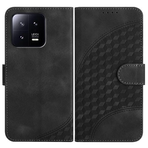 Para Xiaomi 13 Yx0060 Funda de Cuero para Teléfono con Relieve y Cabeza de Elefante con Cordón (Negro)