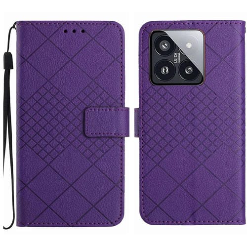 Para Xiaomi 14 Funda De Cuero Con Textura De Rejilla Rómbica (Púrpura)