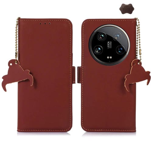 Para Xiaomi 14 Funda Para Teléfono De Cuero Rfid Magnético De Cuero Ultra Genuino (Café)