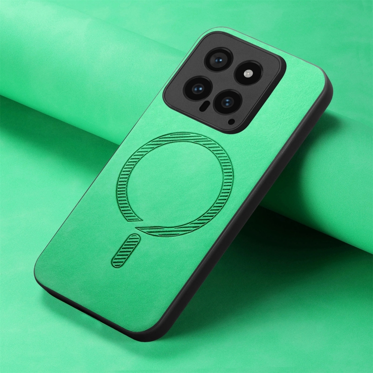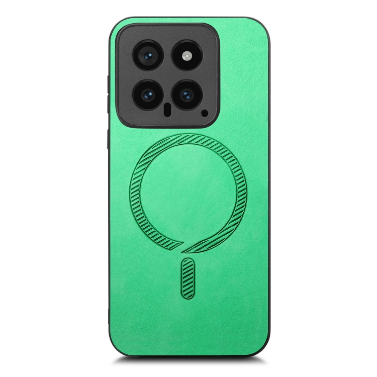 Para Xiaomi 14 Pro 5G Color Sólido Retro Magsafe Pu Funda Para Teléfono Con Contraportada (Verde)