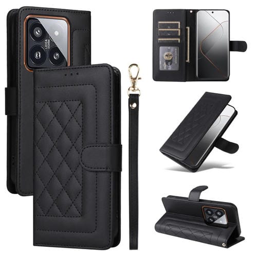 Para Xiaomi 14 Pro 5G Diamond Lattice Funda De Cuero Con Tapa Para Teléfono (Negro)
