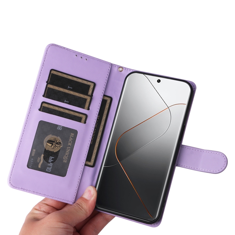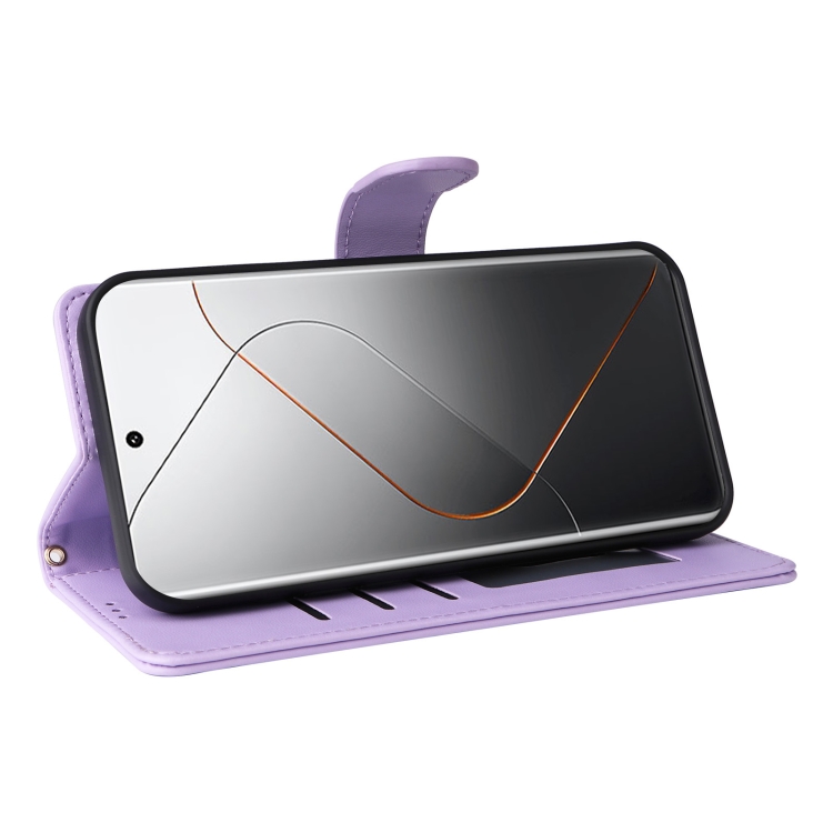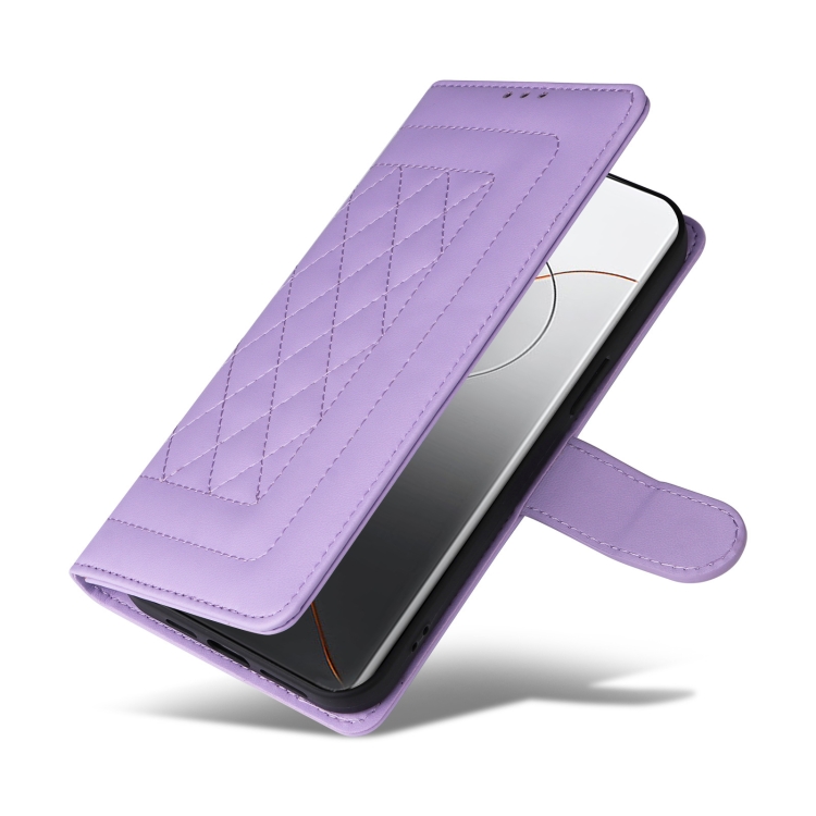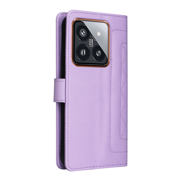 Para Xiaomi 14 Pro 5G Diamond Lattice Funda De Cuero Para Teléfono Con Tapa (Púrpura Claro)