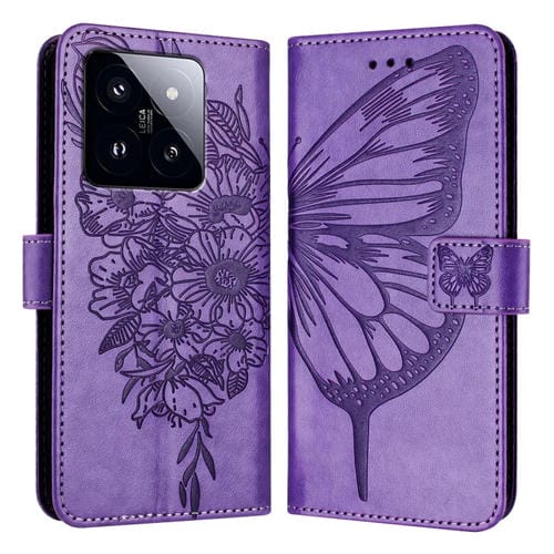 Para Xiaomi 14 Pro 5G Funda Para Teléfono De Cuero Con Mariposa En Relieve Global (Púrpura)