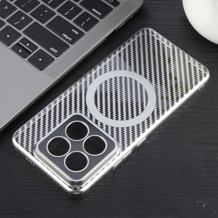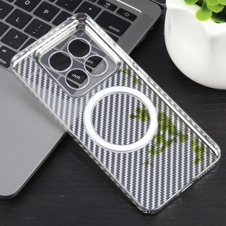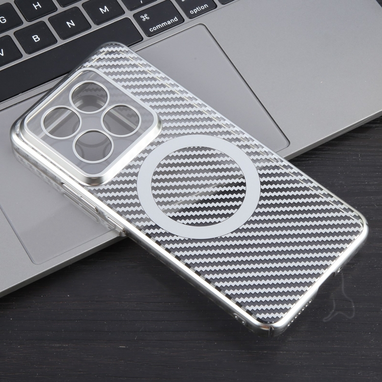 Para Xiaomi 14 Pro 6D Caja De Teléfono Para Pc Magsafe Transparente De Fibra De Carbono Plateada (Starlight Silver)