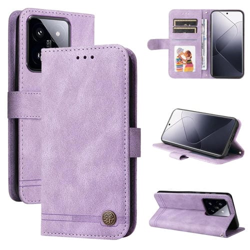 Para Xiaomi 14 Pro Skin Feel Life Tree Funda De Cuero Con Botón De Metal (Púrpura)
