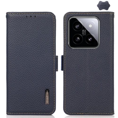 Para Xiaomi 14 Ultra Khazneh Funda Para Teléfono Rfid De Cuero Genuino Litchi Lateral Magnético (Azul)