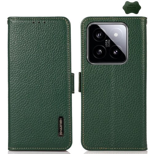 Para Xiaomi 14 Ultra Khazneh Funda Para Teléfono Rfid De Cuero Genuino Litchi Lateral Magnético (Verde)