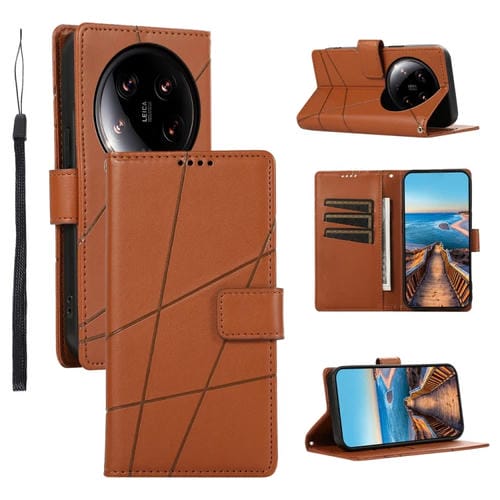 Para Xiaomi 14 Ultra Pu Funda Para Teléfono Con Línea En Relieve Con Textura De Cuero Genuino (Marrón)