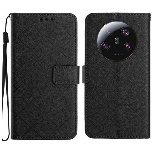 Para Xiaomi 14 Ultra Rhombic Grid Texture Funda De Cuero Para Teléfono (Negro)
