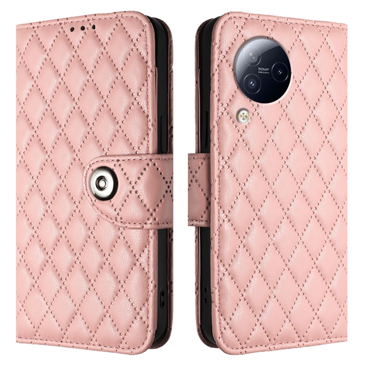 Para Xiaomi Civi 3 Funda de Cuero con Tapa con Textura Rómbica y Cordón (Rosa Coral)