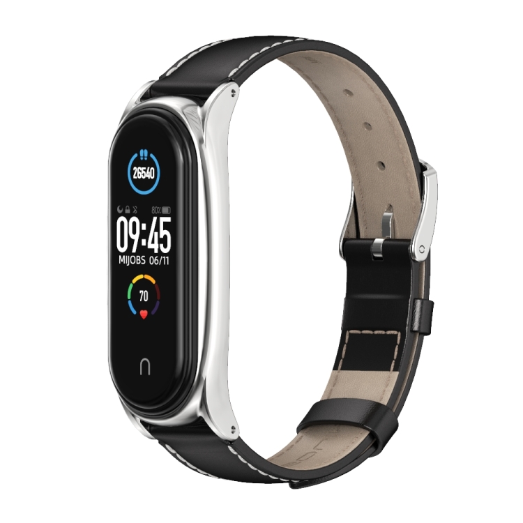 Para Xiaomi Mi Band 6/5/4/3 Mijobs First Cape Cowhide Plus Watch Band (Silver Negro)