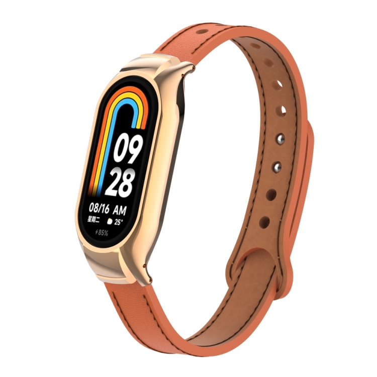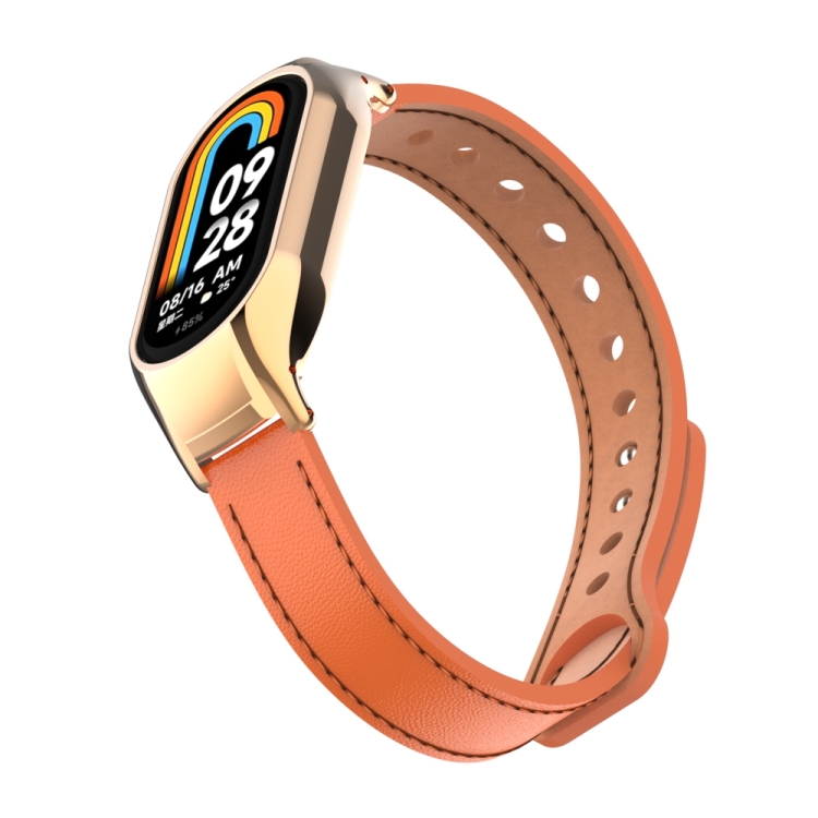 Caja de Metal integrada para Xiaomi Mi Band 8 + Correa de Cuero Microfibra Doble Clavo (Naranja)