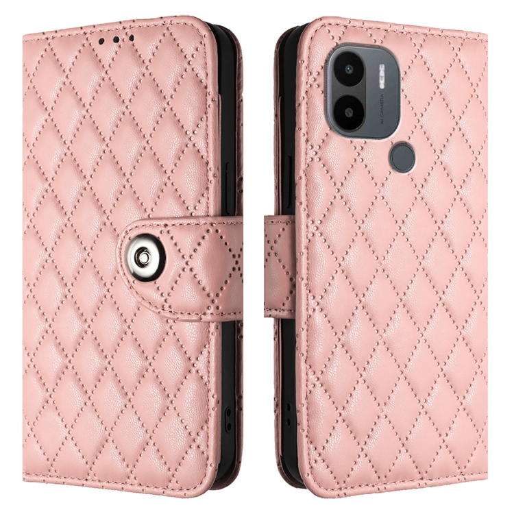 Para Xiaomi Poco C51 / C50 Funda para Teléfono con Tapa de Cuero con Textura Romboidal y Cordón (Rosa Coral)