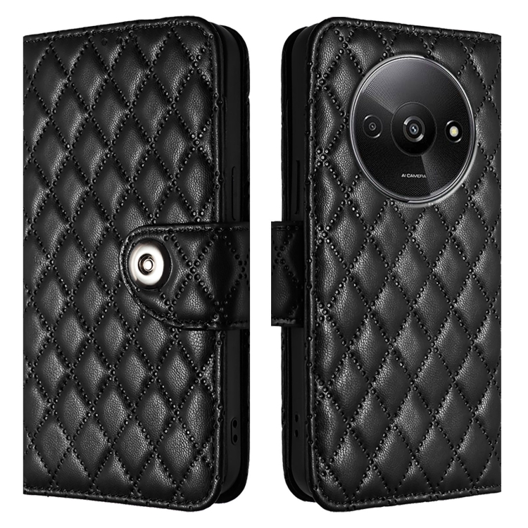 Para Xiaomi Poco C61 Funda para Teléfono de Cuero con Tapa con Textura Rómbica y Cordón (Negro)