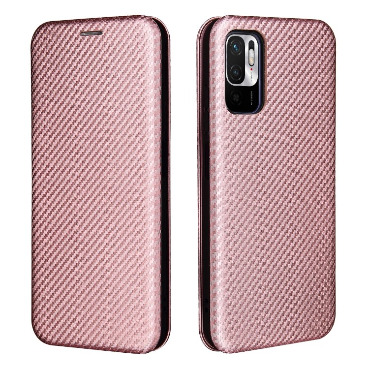 Para Xiaomi Poco M3 Pro 5G / 4G de Fibra de Carbono Textura Magnética Horizontal Flip TPU + PC + Funda de Cuero Pu con Ranura para Tarjeta (Rosa)