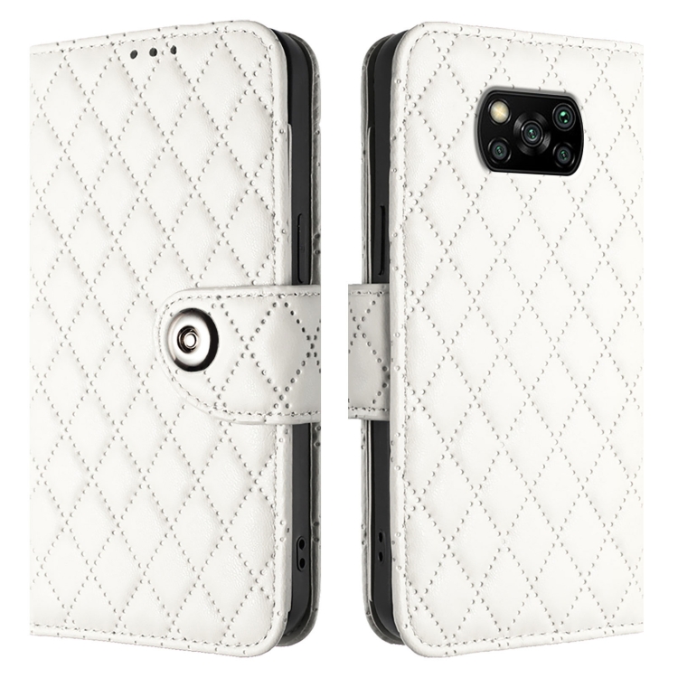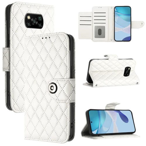 Para Xiaomi Poco X3 / X3 Nfc / X3 Pro Funda para Teléfono de Cuero con Tapa con Textura Rómbica y Cordón (Blanco)