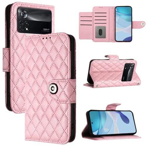 Para Xiaomi Poco X4 Pro 5G Funda de Cuero con Tapa con Textura Romboidal y Cordón (Rosa)