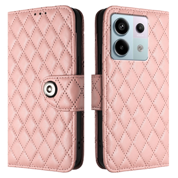 Para Xiaomi Poco X6 Funda para Teléfono de Cuero con Tapa con Textura Rómbica y Cordón (Rosa Coral)