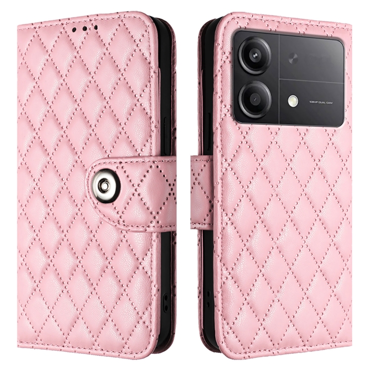 Para Xiaomi Poco X6 Neo Funda para Teléfono con Tapa de Cuero con Textura Rómbica y Cordón (Rosa)