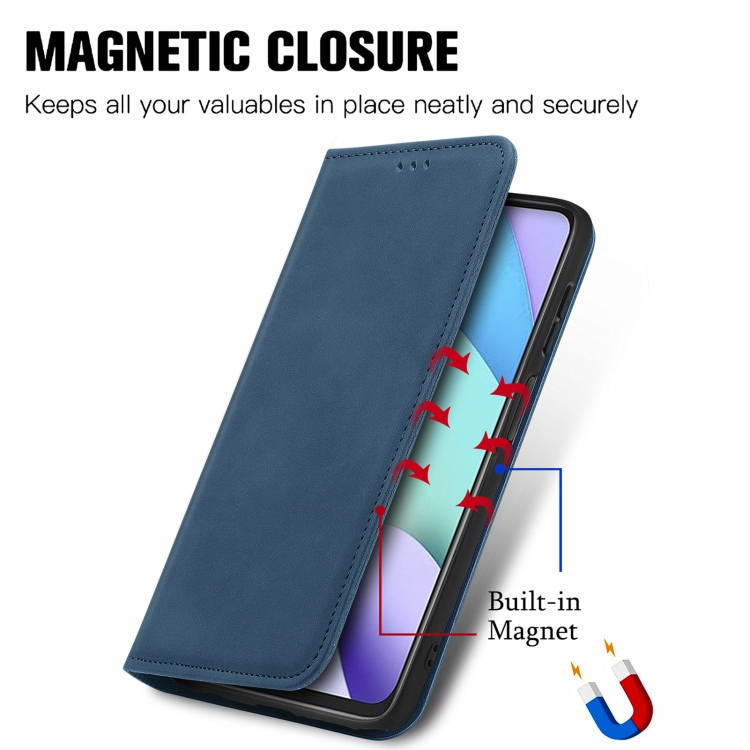 Para Xiaomi Rdemi 10 Retro Piel Siente Negocio Magnético Horizontal Flip Funda de Cuero con Soporte y Ranuras para Tarjetas y Marco de Cartera (Azul)