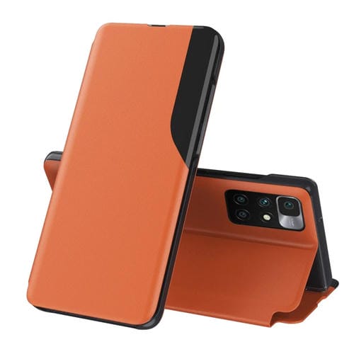 Para Xiaomi Redmi 10 Pantalla Lateral a Prueba de Golpes Horizontal Flip Funda con Soporte (Naranja)