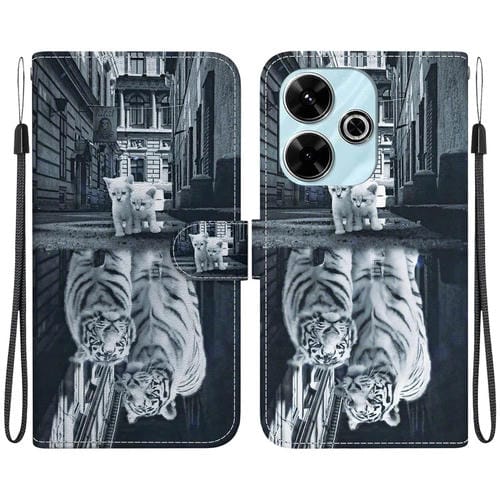 Para Xiaomi Redmi 13 4G Funda de Cuero para Teléfono con Dibujo Coloreado con Textura de Cristal (Reflejo de Tigre Gato)