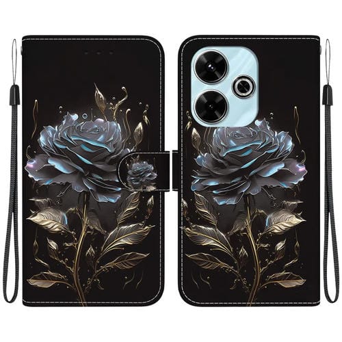 Para Xiaomi Redmi 13 4G Funda de Cuero para Teléfono con Dibujo Coloreado con Textura de Cristal (Rosa Negra)