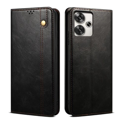 Para Xiaomi Redmi 13 4G Global Oil Wax Crazy Horse Texture Funda de Cuero para Teléfono (Negro)