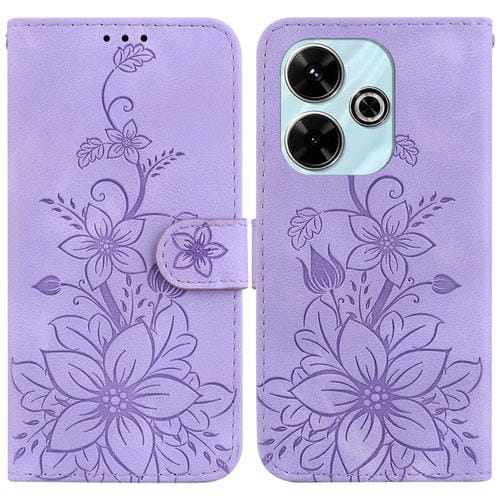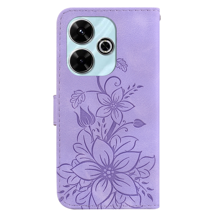 Para Xiaomi Redmi 13 4G Lily Funda de Teléfono de Cuero En Relieve (Púrpura)