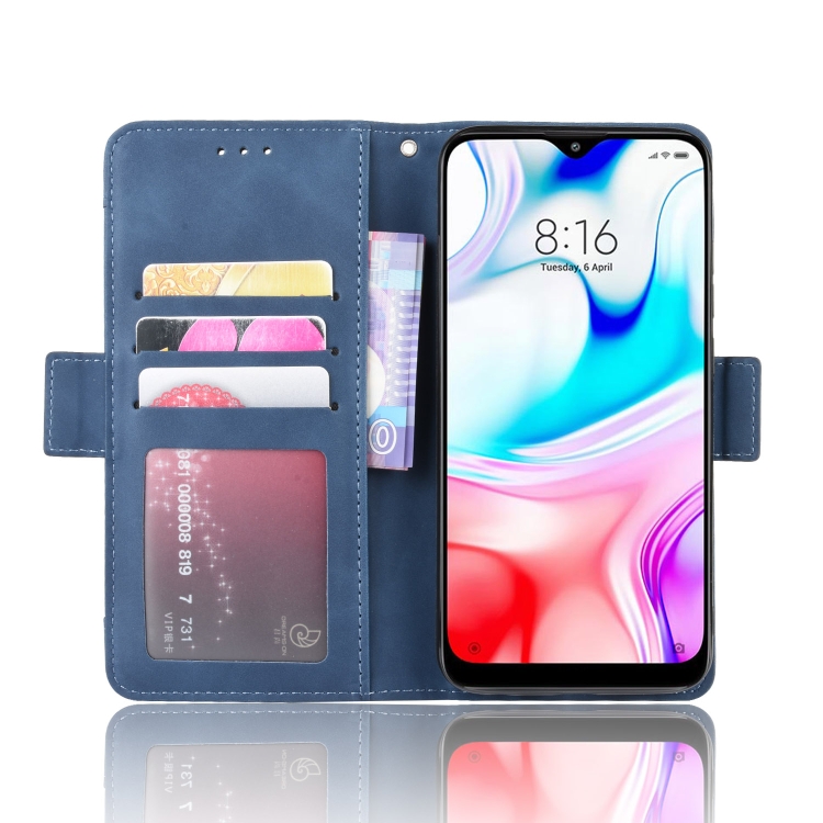 Para Xiaomi Redmi 8 Estuche de Cuero con Diseño de Pantorrilla y Piel Estilo Billetera con Ranura para Tarjeta Separada (Azul)