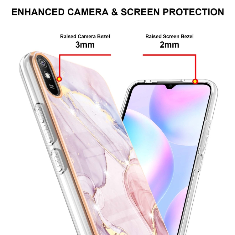 Para Xiaomi Redmi 9A Patrón de Mármol de Galvanoplastia de Electrochaplating Imd TPU Imd TPU (Oro Rosa 005)
