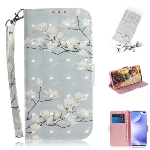 Para Xiaomi Redmi K30 3D Painting Funda de Cuero con Tapa Horizontal con Soporte y Ranura para Tarjeta y Billetera y Cordón (Flor de Magnolia)