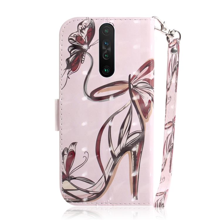 Para Xiaomi Redmi K30 Funda de Cuero con Tapa Horizontal de Pintura 3D con Soporte y Ranura para Tarjeta y Billetera y Cordón (Mariposa y Tacones Altos)