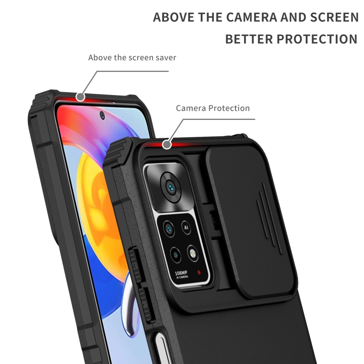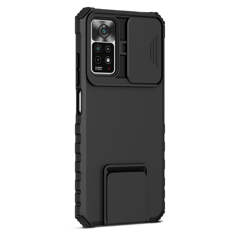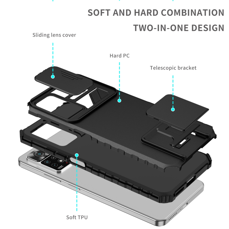 Para Xiaomi Redmi Note 10 Pro Global Stereoscopic Holder Sliding Camshield Phone Case (Negro)