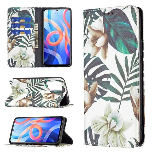 Pour Xiaomi Redmi Note 11 Motif de dessin en couleur Téléphone en cuir PU magnétique invisible (feuilles rouges)