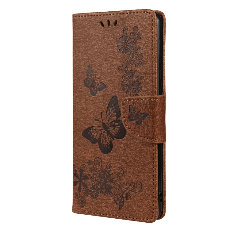 Para Xiaomi Redmi Note 11 Pro Butterfly Funda de Cuero Horizontal de Cuero Horizontal con Ranura para Tarjeta y Soporte (Marrón)